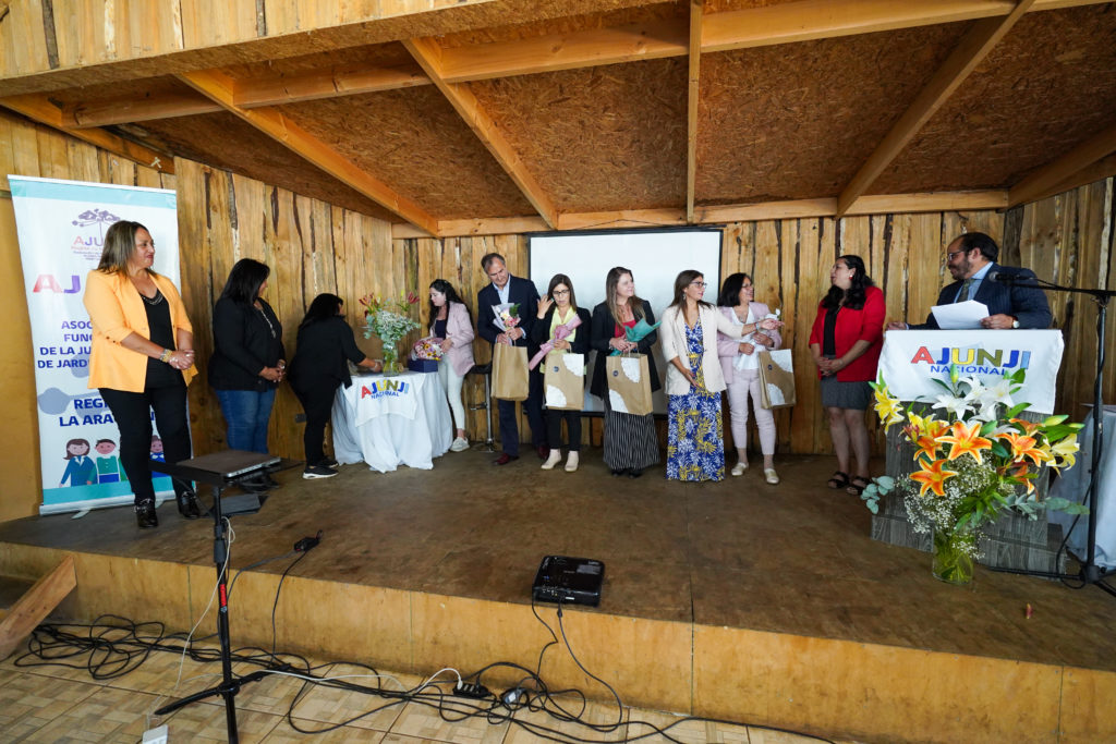 Al evento asistieron, la vicepresidenta ejecutiva de nuestro servicio, autoridades JUNJI nacionales y regionales, Seremi regional y la presidenta de la CUT de la Región de la Araucanía, el director regional de JUNJI y nuestras presidentas regionales de la Zona Sur, además de compañeros y compañeras dirigentes y nuestras asociadas.